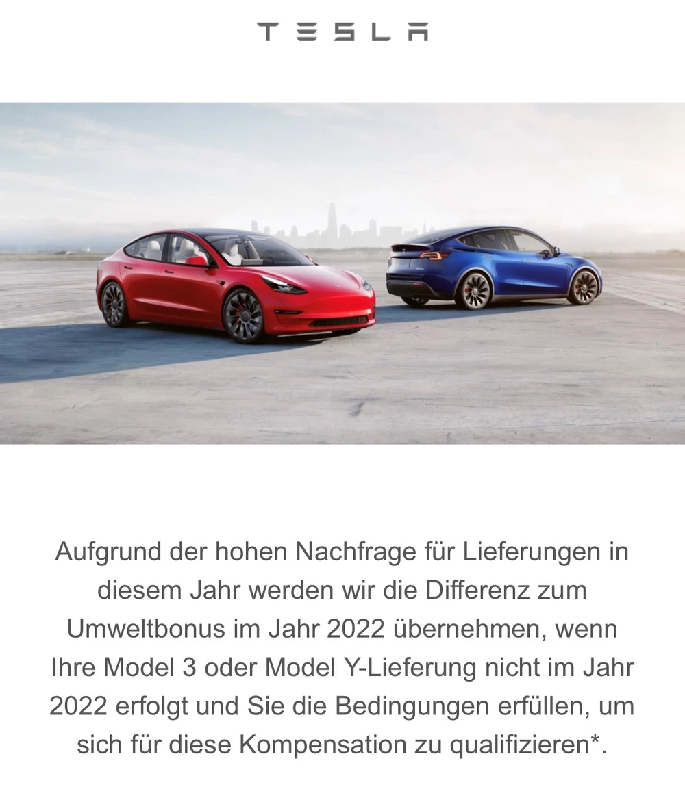 „Da ist die Preissenkung“, freut sich Elektroauto-Pionier Stefan Moeller heute. Er hatte im Interview mit dem AKTIONÄR Hot Stock Report unlängst darauf spekuliert. Nun meldet sich Tesla bei seinen (potentiellen) Kunden mit einer guten Nachricht - siehe Screenshot.