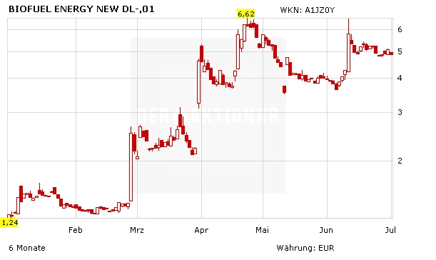 Mit einer Performance von 282 Prozent hat es mit Biofuel Energy ein Unternehmen aus dem Bereich Biokraftstoffe auf den dritten Platz der besten Aktien geschafft. Hier waren vor allem Übernahmegerüchte für den kräftigen Anstieg verantwortlich.