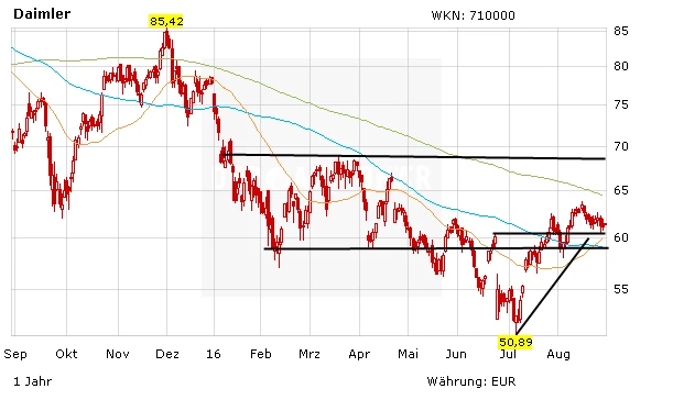 Kurz zuvor misslang der Daimler-Aktie erneut der Sprung über die 200-Tage-Linie, die als Gradmesser für den längerfristigen Trend gilt.