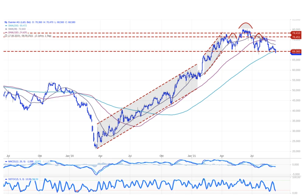 Die Daimler-Aktie hat in den letzten Tagen deutlich an Wert eingebüßt. Vorstandschef Ola Källenius konnte der Aktie keine neuen Impulse verleihen, obwohl der CEO zuletzt etwas Entspannung signalisierte, was den Engpass im Halbleiter-Bereich angeht. Die Aktie steht vor einer wichtigen Unterstützung.