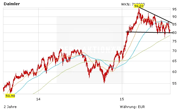 Die Deutsche Bank hat Daimler auf "Buy" mit einem Kursziel von 110 Euro belassen. Für Analyst Tim Rokossa ist Daimler der "Top Pick" der Branche. Auch DER AKTIONÄR rückt nicht von seiner Einschätzung ab. Unter 82 Euro ist und bleibt die Daimler-Aktie ein Kauf, Die geringeren Wachstumsraten in China sollten nun weitgehend im Kurs eingepreist sein. Sofern der Gesamtmarkt wieder freundlich tendiert, sollte auch das Papier von Daimler wieder deutlich zulegen.