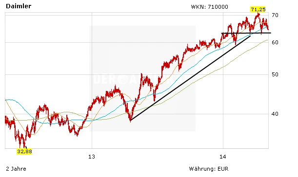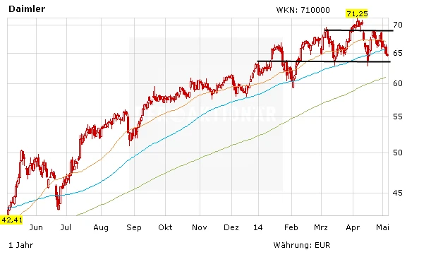 Während die Papiere von BMW und Volkswagen noch nach einem klaren Trend suchen, hinterlässt die Aktie von Daimler nach wie vor einen starken Eindruck. Die Aktie befand sich seit April 2013 in einem intakten Aufwärtstrend. Seit Februar läuft die Aktie seitwärts. Die guten Zahlen für das erste Quartal untermauern die Kursentwicklung. Fakt ist, dass Daimler im Dreikampf mit BMW und Audi im Premium-Bereich weiter Boden gut macht.