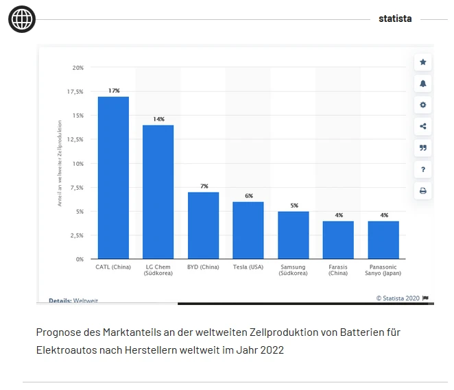 Auch die im Raum stehende Beteiligung am Batteriezellenhersteller Farasis Energy passt ins Bild. Experten gehen davon aus, dass Farasis im Jahr 2022 auf einen Marktanteil von vier Prozent im Bereich der Batteriezellen kommen könnte. Farasis wird also durchaus ein wichtiger Player im Markt der Batteriezellen neben CATL, LG Chem und Samsung SDI.