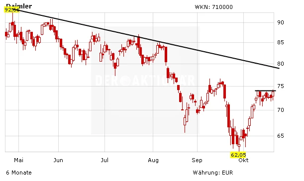 Frank Schwope von der NordLB lässt die Daimler-Aktie auf „kaufen“. Während die Automobil-Branche wegen des Abgasmanipulationsskandals von Volkswagen unter besonderer Beobachtung stehe, glänzt Daimler gegen den Trend mit starken Absatzzahlen in China (9/2015: Plus 46,3 Prozent) und starken Ergebnisgrößen, so Schwope. Sein Kursziel lautet 95 Euro. Auch DER AKTIONÄR bleibt von Daimler überzeugt. Das Momentum für Autoaktien hellt sich weiter auf. Mit einem guten Gesamtmarkt im Rücken, sollte die Aktie in den nächsten Wochen Fahrt Richtung dem mittelfristigen Abwärtstrend bei rund 80 Euro aufnehmen. Halten!