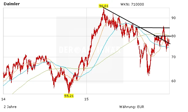 Gelingt endlich der nachhaltige Spring über die 200-Tage-Linie, bedeutet das gleichzeitig ein neues Kaufsignal für die Daimler-Aktie. Nächstes Ziel wäre dann die Marke von 85 Euro. Investiert Anleger bleiben auf jeden Fall dabei!