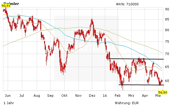 Dennoch: Ganz so optimistisch wie die beiden Analysten ist DER AKTIONÄR aktuell nicht. Der Chart ist angeschlagen. Der Markt ist volatil, die Autoaktien verlieren nahezu überproportional täglich an Wert. Vorsicht ist angebracht! Das Papier muss am Freitag so schnell wie möglich die Unterstützung bei 57,50 Euro zurückerobern. Nächster Widerstand ist bei 55,00 Euro. Auf diesem Niveau kann ein Abstauberlimit in den Markt gelegt werden.