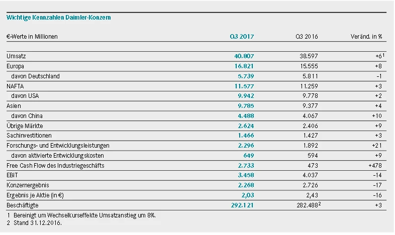 Darüber hinaus steht Daimler vor einem großen Umbau. Der Konzern wird in Zukunft nicht mehr als zusammengewürfelter, träger Gemischtwarenladen geführt, sondern aus drei rechtlich unabhängigen Sparten bestehen. Dem Auto-Segment, der Brummi-Sparte und dem Bereich Financial Services. Diese werden in Zukunft als rechtlich selbständige Einheiten agieren. Und vielleicht wird auch die eine oder andere Sparte an die Börse gebracht, um die Milliarden für die Investitionen in E-Mobilität und Mobilitätskonzepte bereit zu stellen.