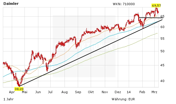 Indes hat die französische Großbank Societe Generale das Kursziel für Daimler mit Blick auf den geplanten Verkauf des Anteils am Joint-Venture Rolls-Royce Power Systems von 76 auf 80 Euro angehoben und die Einstufung auf 'Buy' belassen. Mit dem anstehenden Verkauf konzentriere sich der Autobauer noch mehr auf sein Kerngeschäft, schrieb Analyst Stephen Reitman in einer Studie vom Montag. Die Transaktion dürfte sich positiv auf den Cashflow und die Bewertung auswirken.
