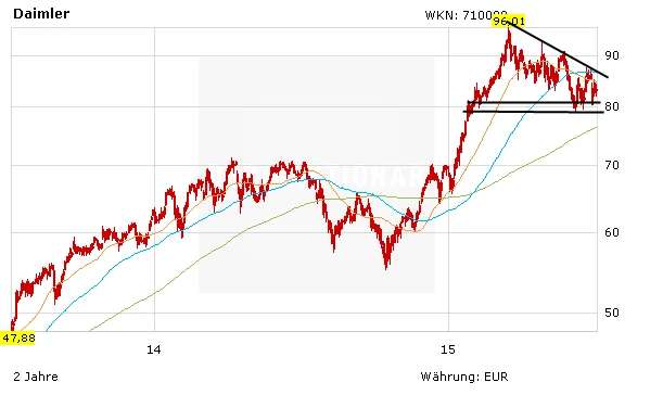 Im Zuge der neuen Turbulenzen rund um Griechenland sollten Anleger versuchen, die niedrigen Kurse zu nutzen. Unter 82 Euro ist die Aktie ohnehin ein Kauf. Ein weiteres Abstauberlimit wird bei 79,80 Euro platziert. An der mittel- und langfristigen positiven Einschätzung für die Daimler-Aktie ändert sich nichts. Sofern die Märkte wieder zur Tagesordnung zurückkehren, ist das nächste Etappenziel die Marke von 90 Euro. Anleger geben kein Stück aus der Hand.