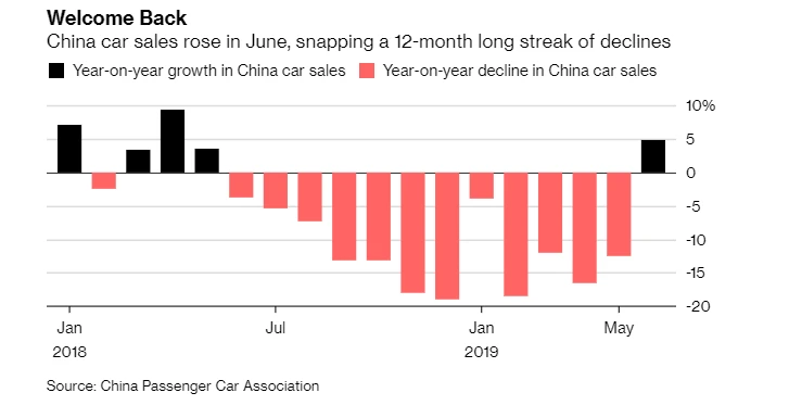 Chinas Automarkt hat zum ersten Mal seit Beginn der Absatzflaute vor einem Jahr wieder zugelegt. Im Juni seien mit 1,8 Millionen Fahrzeugen 4,9 Prozent mehr Pkw an Kunden verkauft worden als im Vorjahresmonat, teilte der Branchenverband China Passenger Car Association (PCA) mit. Zuvor war der Markt laut PCA-Daten zwölf Monate lang auf dem Rückzug gewesen.