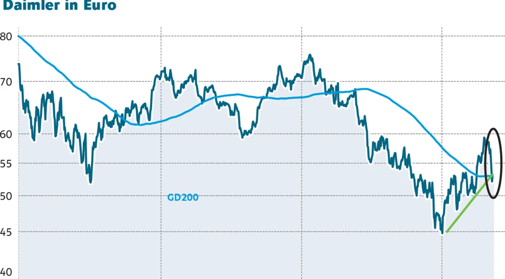 Die letzte Ausbruchslinie bei 57,36 Euro wurde nach unten durchbrochen. Auch die Unterstützungszone zwischen 56,45 Euro und 54,75 Euro hat nicht gehalten. Auf dem aktuellen Niveau sollte sich die Daimler-Aktie einpendeln. Hier können Anleger erste vorsichtige Käufe vornehmen. Zeichnet sich eine Lösung im Handelsstreit zwischen den USA und China ab, sollte sich die Daimler-Aktie schnell wieder erholen.
