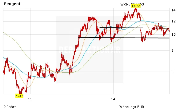 Im Zuge der Marktschwäche hat die Peugeot-Aktie in den letzten Wochen deutlich korrigiert. Von knapp 12 Euro ging es bis auf 10 Euro abwärts. Auf diesem Niveau traf das Papier auf massive Unterstützung. Die Aktie ist eine großartige Comeback-Chance im Autosektor in Europa. Im Vergleich zu Daimler, BMW und VW weist das Papier von Peugeot auch das weitaus bessere Chance-Risiko-Verhältnis auf.