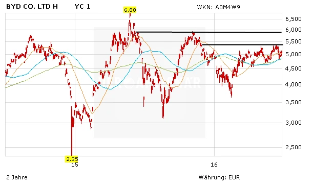 Spannend ist auch das Papier von BYD. Damit setzen Anleger auf den Ausbau der Elektromobilität in China sowie auf die Tatsache, dass China seine heimischen Hersteller in Zukunft pushen wird.