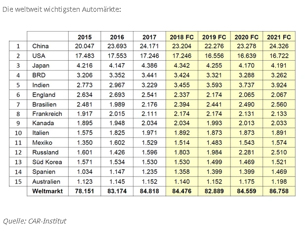 Zur Erinnerung: In China werden jedes Jahr 23 Millionen neue Autos verkauft. Die Nummer 2, die USA, kommen jährlich auf 16 Millionen neu verkaufte Autos.