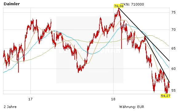Gut möglich, dass die Aktie das Schlimmste hinter sich hat. Sofern Daimler nun endlich seine neuen Modelle auf die Bahn bringt, könnte die Börse wieder neue Hoffnung schöpfen. Trading-Käufe sind auf dem aktuellen Niveau vertretbar. Stoppkurs fünf Prozent unter dem Einstieg setzen.