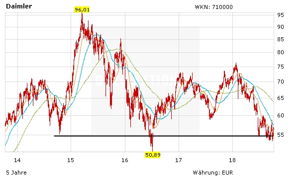Ola Källenius st der richtige Mann für das neue Zeitalter bei Daimler. Gut möglich, dass mit der Bekanntgabe des Chefwechsels eine Art Wendepunkt bei der Aktie erreicht ist. Bei 54,50 Euro hat die Aktie eine starke Unterstützung. Hier hat das Papier immer wieder nach oben gedreht. Eine kleine Position ist auf diesem Niveau vertretbar. Der Stoppkurs sollte in der aktuellen Situation sehr eng (8 Prozent unter dem aktuellen Kurs) gesetzt werden.