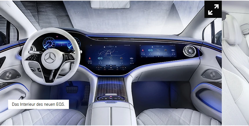 Beim EQS handle es sich um die "bedeutendste Mercedes-Neuvorstellung der letzten zehn Jahre", sagt Dudenhöffer. Das neue Flaggschiff fällt optisch durch seine rahmenlosen Türen, eine nahtlos in die Motorhaubenpartie übergehende Frontscheibe und ein 1,41 Meter breites Display im Inneren auf. Källenius bezeichnete den fünf Meter langen Wagen, der im Sommer in die Autohäuser kommen soll, vor der Premiere als "spektakulär". So etwas habe "die Welt noch nicht gesehen", kündigte er in der "Frankfurter Allgemeinen Sonntagszeitung" an.