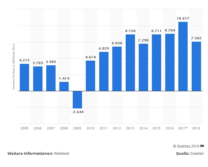 Gewinn/Verlust der Daimler AG von 2005 bis 2018 (in Millionen Euro):