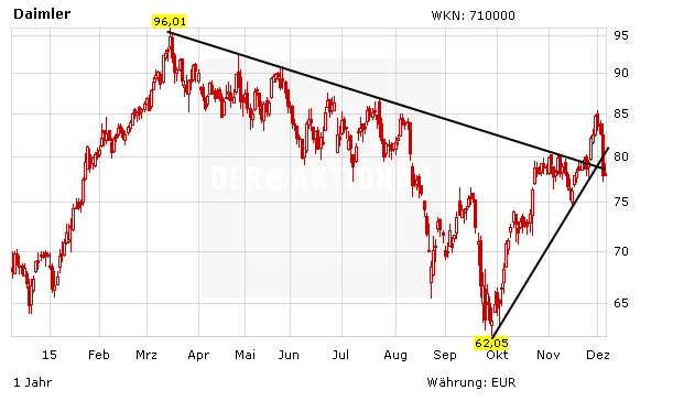 Obwohl die Daimler-Aktie durch das Kursminus wieder unter die 200-Tage-Linie gefallen ist und sich das Chartbild etwas eingetrübt hat, bleibt der Titel aussichtsreich. DER AKTIONÄR sieht Daimler weiter als Nummer 1 unter den Autobauern. Neben der starken Kursentwicklung spricht auch die attraktive Dividende für die Stuttgarter. Anleger bleiben dabei. Schwache Tage können auch von Neueinsteigern zum Aufbau einer Position genutzt werden.