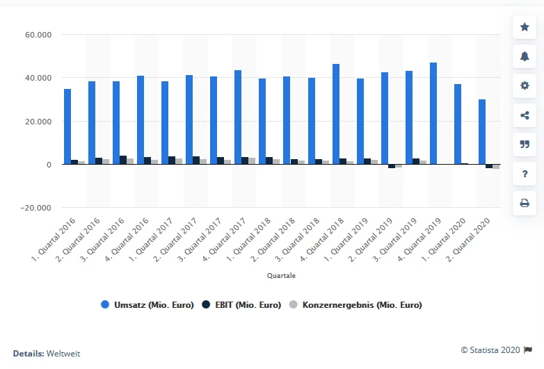 Diese lautet aktuell lediglich, dass Absatz, Umsatz und operatives Ergebnis wegen der Corona-Pandemie deutlich unter den Vorjahreswerten liegen dürften. Offen sind auch noch Angaben zum Umsatz und zur operativen Rendite der Geschäfte im dritten Quartal - Finanzchef Harald Wilhelm hatte sich zur Margenentwicklung im abgelaufenen Quartal aber bereits "glücklich" gezeigt.