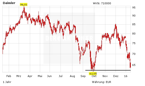 Im schwachen Gesamtmarkt verbuchte die Daimler-Aktie am Freitag kräftige Verluste. Für Unruhe und weiteren Verkaufsdruck in der gesamten Autobranche sorgten auch Gerüchte über mögliche Abgasmanipulationen bei Renault.
