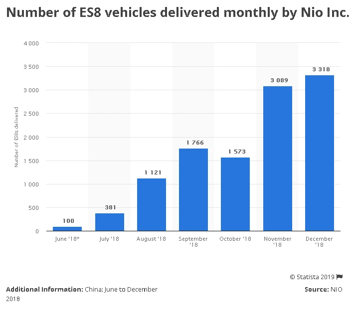 Nio liegt gut im Rennen: 2018 verkaufte das Label 11.348 E-Flitzer seines Vorzeigemodels ES8. Erst vor kurzem wurde der ES6 vorgestellt. Dieser soll unter anderem in Österreich von Magna gebaut werden.