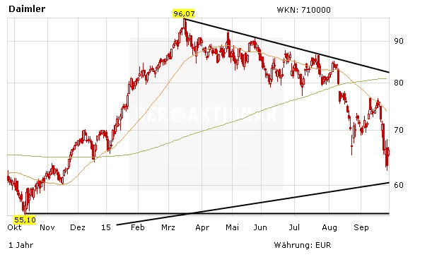 Nein, Nein und nochmals Nein: Daimler hat nicht manipuliert – sagt Daimler. Doch so recht schenkt diesen Versprechen des Automobilkonzerns derzeit niemand Beachtung. Zudem hat sich die Charttechnik aktuell nochmals verschlechtert.