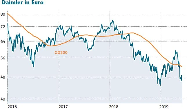Anleger können vorerst durchatmen. Die Daimler-Aktie hat sich im Bereich von 45,00 Euro endlich gefangen. Nach unten wartet die nächste Unterstützung erst im Bereich von 43,50 Euro. Das Chartbild hinterlässt erst wieder einen besseren Eindruck, sobald die Daimler-Aktie nach oben den horizontalen Widerstand bei 48,50 Euro und die psychologisch wichtige Marke von 50,00 Euro überwindet. Was den Gesamtmarkt betrifft, so kann noch keine Entwarnung geben werden. Abwarten!