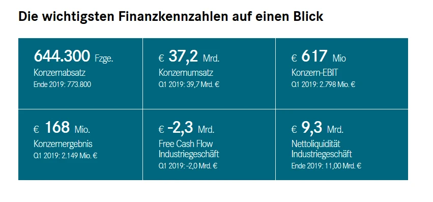 Daimler hatte im ersten Quartal nur 644 300 Autos und Nutzfahrzeuge verkaufen können. Das waren 17 Prozent weniger als im Vorjahreszeitraum. Erste vorläufige Zahlen hatte der Konzern bereits vergangene Woche veröffentlicht und dabei auch schon angekündigt, dass man wegen der Coronavirus-Pandemie sowohl bei Absatz und Umsatz als auch beim Gewinn 2020 unter dem Vorjahreswert liegen werde.