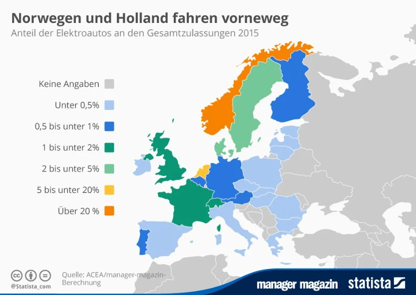 22,4 Prozent aller zugelassenen Fahrzeuge sind Elektroautos – in Norwegen. Von einem solch großen Anteil kann die Bundesregierung in Deutschland nur träumen. Derzeit beläuft sich laut Statista der Anteil batteriebetriebener Fahrzeuge inklusive Hybridautos hierzulande auf gerade einmal 0,73 Prozent. Geht es nach der Bundesregierung soll sich das schnell ändern. Bis 2020 will man eine Million Elektroautos auf die deutschen Straßen bringen.