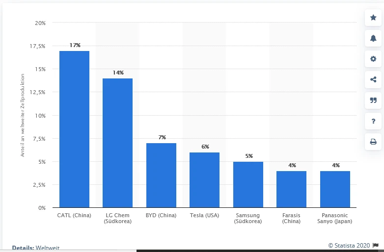 Um die Produktion der Stromer zu gewährleisten, braucht Daimler Batteriezellen. Eine große Nachfrage der Automobil-Hersteller VW, BMW und Mercedes trifft auf wenige Anbieter. CATL, Samsung SDI, LG und Farasis dominieren den Markt der Hersteller von Batteriezellen.