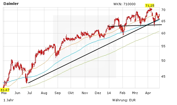 Zetsche und seine Mannschaft können mit einer Produktoffensive fleißig punkten. Vor kurzer Zeit kam der GLA, darauf folgte der Crossover. Weitere Modelle werden folgen. Das sorgt für Fantasie. DER AKTIONÄR erwartet eine Fortsetzung des Aufwärtstrends der Aktie. Ein freundlicher Gesamtmarkt vorausgesetzt. Es bleibt dabei: Schwache Tage sind weiterhin Kauftage.