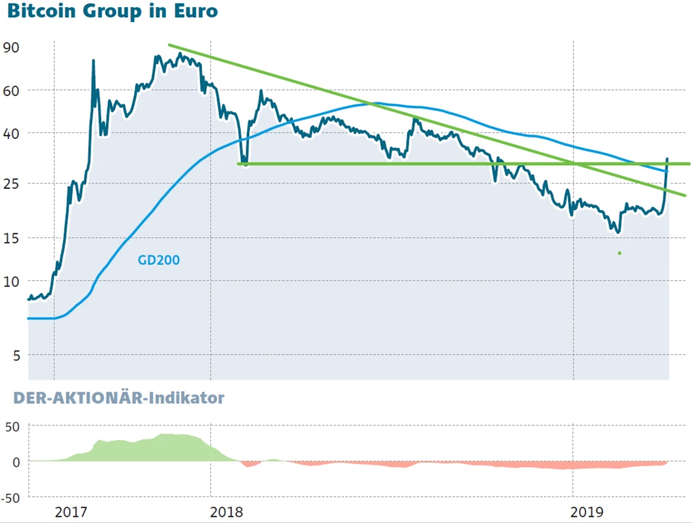 Auch wenn die Hoffnung auf eine Rallye wie Ende 2017 vielleicht (noch) etwas zu hoch gegriffen scheint und die genauen Gründe für den Kurssprung im weitgehend Dunkeln liegen, sendet der Bitcoin nach langer Seitwärtsphase ein wichtiges Lebenszeichen. Das schlagartig steigende Interesse an der Kryptowährung sollte auch der Bitcoin Group zugutekommen, welche die Handelsplattform Bitcoin.de betreibt.