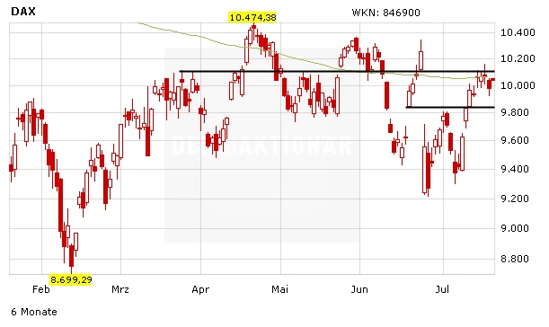 Entscheidend für den weiteren Verlauf ist wie so oft in den letzten Wochen ein Überwinden der 200-Tage-Linie, die bei circa 10.070 Zählern verläuft. Außerdem muss es dem DAX gelingen, den massiven Widerstand im Bereich von 10.100 Punkten zu übertreffen (DER AKTIONÄR berichtete schon mehrfach).