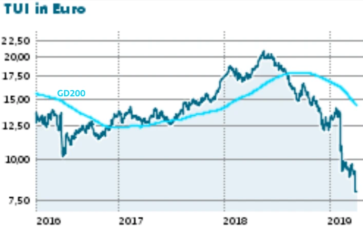 Im günstigeren Fall wird das bereinigte EBITDA1 von zuletzt knapp 1,2 Milliarden Euro im laufenden Geschäftsjahr um 17 Prozent sinken. Im schlechteren Fall wird es sogar um 26 Prozent einbrechen. Zur Erinnerung: TUI-Chef Fritz Joussen hatte seine Gewinnprognose bereits im Februar gekappt. Wegen des Trends zu Last-Minute-Buchungen und den Auswirkungen des Brexits sollte der operative Gewinn seither nur noch stagnieren. Zuvor hatte der Konzern noch eine Steigerung um zehn Prozent vor Währungseffekten in Aussicht gestellt.