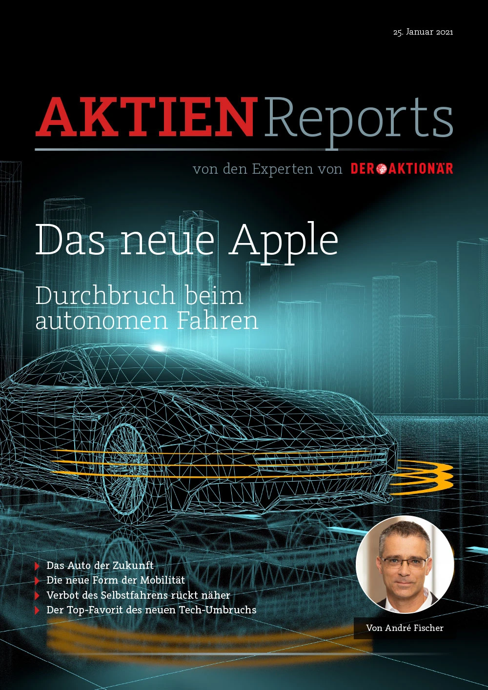 Im 13-seitigen Aktienreport „Das neue Apple – das Auto der Zukunft“ beschreibt André Fischer, wie der neue Börsenstar (bei diesem handelt es sich NICHT um Tesla oder Apple) zunächst Fahr- und Logistikdienste mit der revolutionären Robo-Software ausstatten wird – danach sind dann Abo-Leasing-Modelle für Privatkäufer an der Reihe.