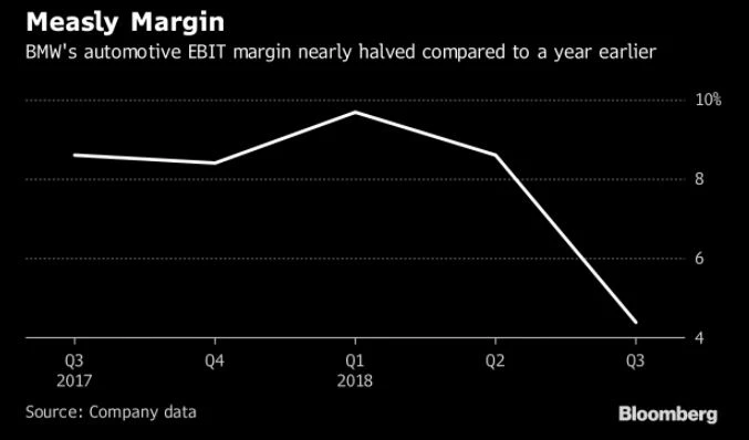 Bereits im September hat BMW den Jahresausblick für 2018 gesenkt. Das Margenziel für den Bereich Automotive wurde revidiert: Statt den üblichen acht bis zehn Prozent rechnet der Konzern nur noch mit sieben Prozent.