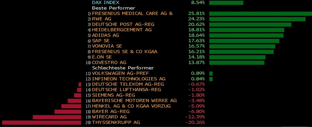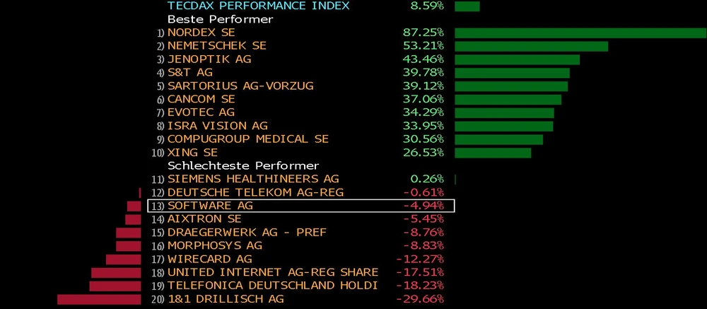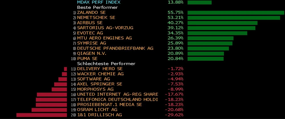 Aus Anlegersicht immer interessant ist die Frage nach den Top-und Flop-Performern in den einzelnen Indizes. DER AKTIONÄR hat die Datenbanken angeschmissen und zumindest für den DAX, MDAX und TecDAX die jeweils besten und schlechtesten Einzelwerte herausgefischt (Quelle: Bloomberg).