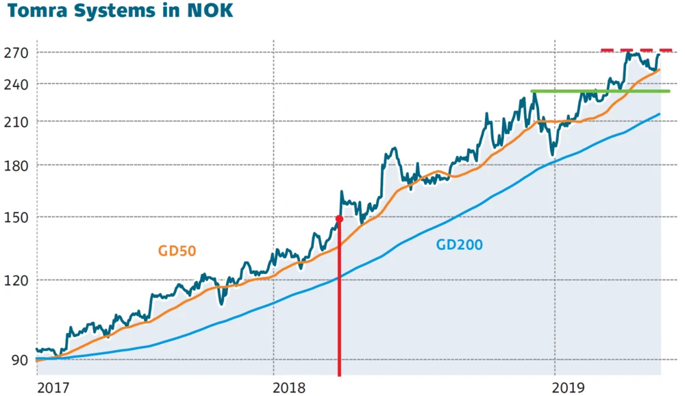 Mit dem Ausbruch auf ein neues Rekordhoch hat die Aktie von Tomra Systems ein starkes Kaufsignal generiert. Klar ist aber auch: Mit einem Kurs-Gewinn-Verhältnis von 47 für 2019 sind die Papiere keineswegs günstig, waren sie allerdings auch selten. Qualität hat bekanntlich seinen Preis. Dabeibleiben!
