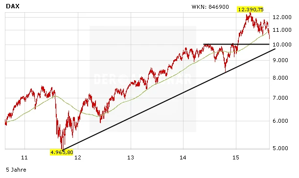 Immerhin weist der DAX seit Jahresbeginn immer noch ein Plus auf. Das wird die Anleger derzeit kaum trösten, aus charttechnischer Sicht sieht es richtig schlecht aus. Die wichtige Unterstützung vom Juli bei 10.650 Punkten hat nicht gehalten. Nun geht der Blick in Richtung 10.000 Punkte, wo eine wichtige Unterstützung verläuft. Die noch bedeutendere Unterstützung ist allerdings bei 9.660 Punkten, dort verläuft der langfristige Aufwärtstrend.