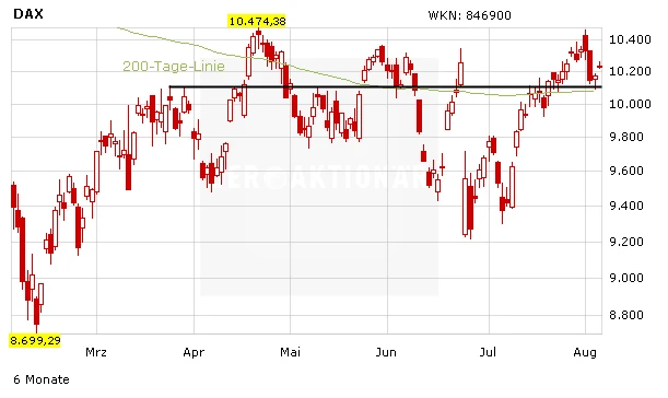 Die Entscheidung der BoE dürfte die Märkte nicht sonderlich beeinflussen, es sei denn, sie vollzieht etwas völlig Unerwartetes. Mehr wird es auf die nächsten Daten vom US-Arbeitsmarkt ankommen, die am Freitag veröffentlicht werden. Unter Trading-Gesichtspunkten bietet sich ein Einstieg im DAX an, sobald das Gap bei 10.190 Punkten geschlossen wird. Als passendes Produkt empfiehlt DER AKTIONÄR den Turbo-Long der DZ Bank mit der WKN DGH1CM.