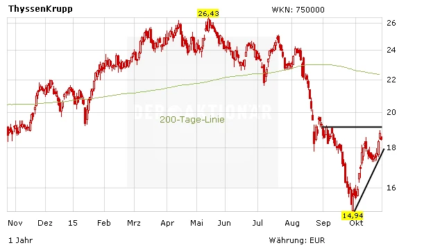 Analyst Michael Flitton von der US-Investmentbank strich nun seine im Juni ausgesprochene Kaufempfehlung für die Anteile des Stahl- und Industriekonzerns. Flitton hat zudem das Kursziel von 26,50 auf 21,00 Euro gesenkt. Er habe zu stark auf ihre günstige Bewertung gesetzt, so der Experte. Angesichts der Nachfrageschwäche aus der Industrie und des schwächelnden Stahlpreises habe sich diese Entscheidung als falsch herausgestellt. ThyssenKrupp habe in puncto Gewinn und Liquidität zwar deutliches Steigerungspotenzial, allerdings dürfte dies nicht in dem vom Markt erwarteten Zeitrahmen realisierbar sein.
