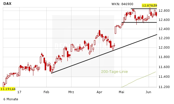 Trotz des Rücksetzers am Montag stimmt das Bild nach wie vor. Der DAX verteidigt auch in Zeiten politischer Unruhen sein hohes Niveau. Die 12.700-Punkte-Marke wurde wieder überwunden und steht nach wie vor im Fokus. Bei guten Nachrichten von der Fed könnte auch das Rekordhoch bei 12.878 Punkten wieder in den Fokus rücken. Der Turbo-Long mit der WKN DGV74F bleibt aktiv.