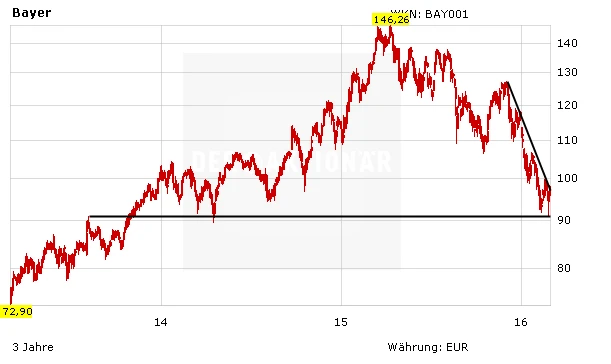 Demnach hat Analyst Tim Race den fairen Wert für die BayerAnteile von 155 auf 140 Euro gesenkt, was mehr als 40 Prozent über dem aktuellen Kursniveau liegt. Die Einstufung wurde dementsprechend auf "Buy" belassen. Der Ausblick des Pharma- und Chemiekonzerns für 2016 habe auf der Gewinnseite (EBITDA und EPS) zwar wegen höher ausgefallener Kosten und geringerer Synergien seine Schätzungen verfehlt. Doch das bereinigte Wachstum sei stark und sollte sich 2017 normalisieren.