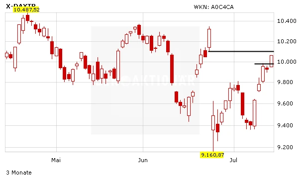 Am Dienstagmorgen hatte DER AKTIONÄR über seinen E-Mail-Newsletter zum Einstieg in den Turbo-Optionsschein mit der WKN DG0KP5 (Empfehlungskurs: 10,05 Euro) geraten. Der Schein hat bereits gut zugelegt. Der Stoppkurs sollte bei einem DAX-Kurs von 9.760 Punkten platziert werden.
