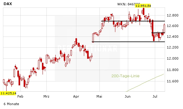 Die Rede von Fed-Chefin Janet Yellen vor dem US-Kongress hat den DAX aus seinem Tiefschlaf aufgeweckt. Bereits gestern hat der deutsche Leitindex deutlich zugelegt und ist aus der Schiebezone zwischen 12.325 und 12.500 Punkten ausgebrochen. Das Plus kann heute verteidigt werden, der DAX hat knapp unter 12.640 Zähler eröffnet.