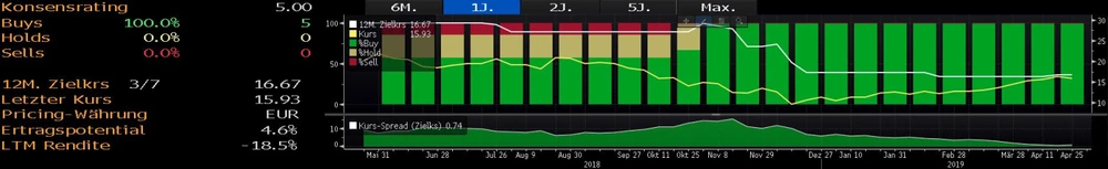 Das durchschnittliche Kursziel von 16,67 Euro ist nach der rasanten Kursrallye zwar beinahe erreicht. Allein im laufenden Jahr stiegen die Aktien von RIB Software über 40 Prozent. Doch die Zahlen am 30. April könnten neue Impulse bringen.
