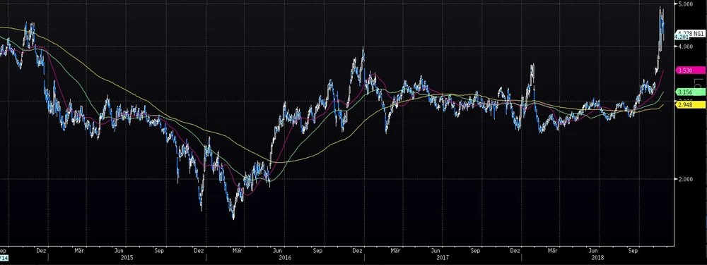 Doch nicht nur in Deutschland legen die Gaspreise zu. Der börsengehandelte Gaspreis (Henry Hub) hat ein neues Mehrjahreshoch markiert (siehe Chart). Allerdings gab es in der Vergangenheit bereits mehrere Male derartig starke Anstiege, die aber meist nicht von längerer Dauer waren.