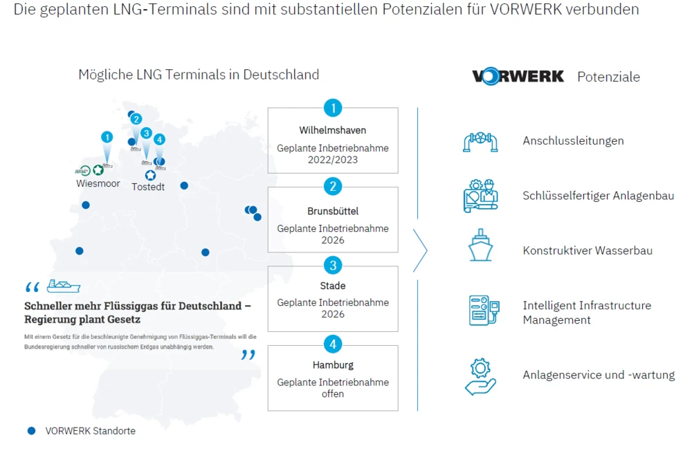 Lange überwog in Deutschland die Ansicht, ein eigenes Terminal zum Import von Flüssigerdgas (LNG) wäre unnötig. Doch durch den Russland-Ukraine-Krieg steht eine umfassende Neuordnung der Energieversorgung bevor. Ein Blick auf den Nachrichtenticker zeigt: Einer der potenziellen Profiteure ist Friedrich Vorwerk.