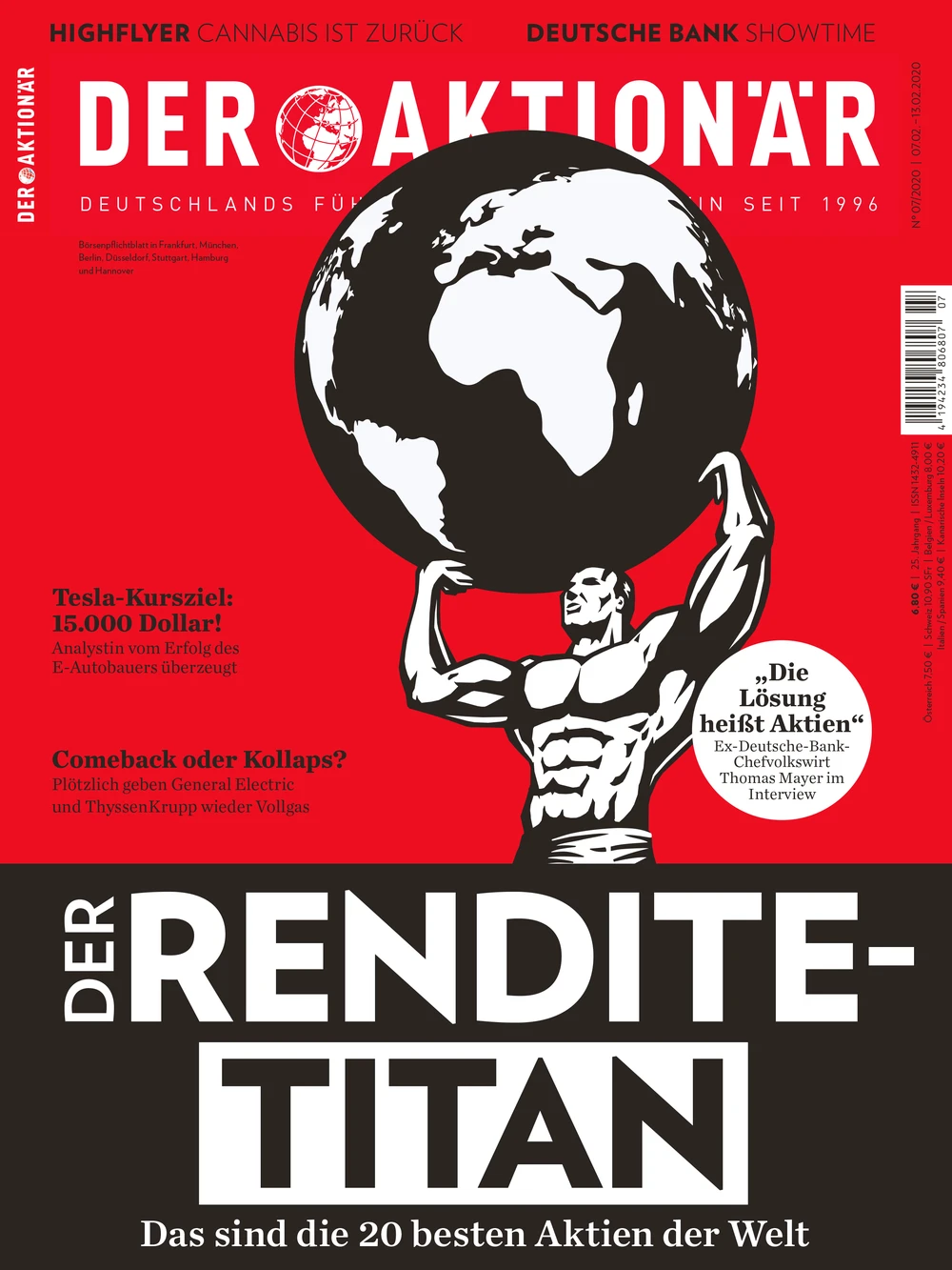 Die Titelstory des aktuellen AKTIONÄR hat den AKTIONÄR Titan 20 Index zum Thema. Langfristig orientierte Anleger, die an einem soliden und nachhaltigen Vermögensaufbau interessiert sind, finden im Titan 20 Index Werte, die in ihren Branchen eine starke Position einnehmen, hochkapitalisiert sind und über ein beständiges Wachstumspotenzial verfügen. Der eher defensiv angelegte Index zeigt enorm viel Biss. Er performt in den letzten Jahren deutlich besser als der DAX oder der DOW Jones.